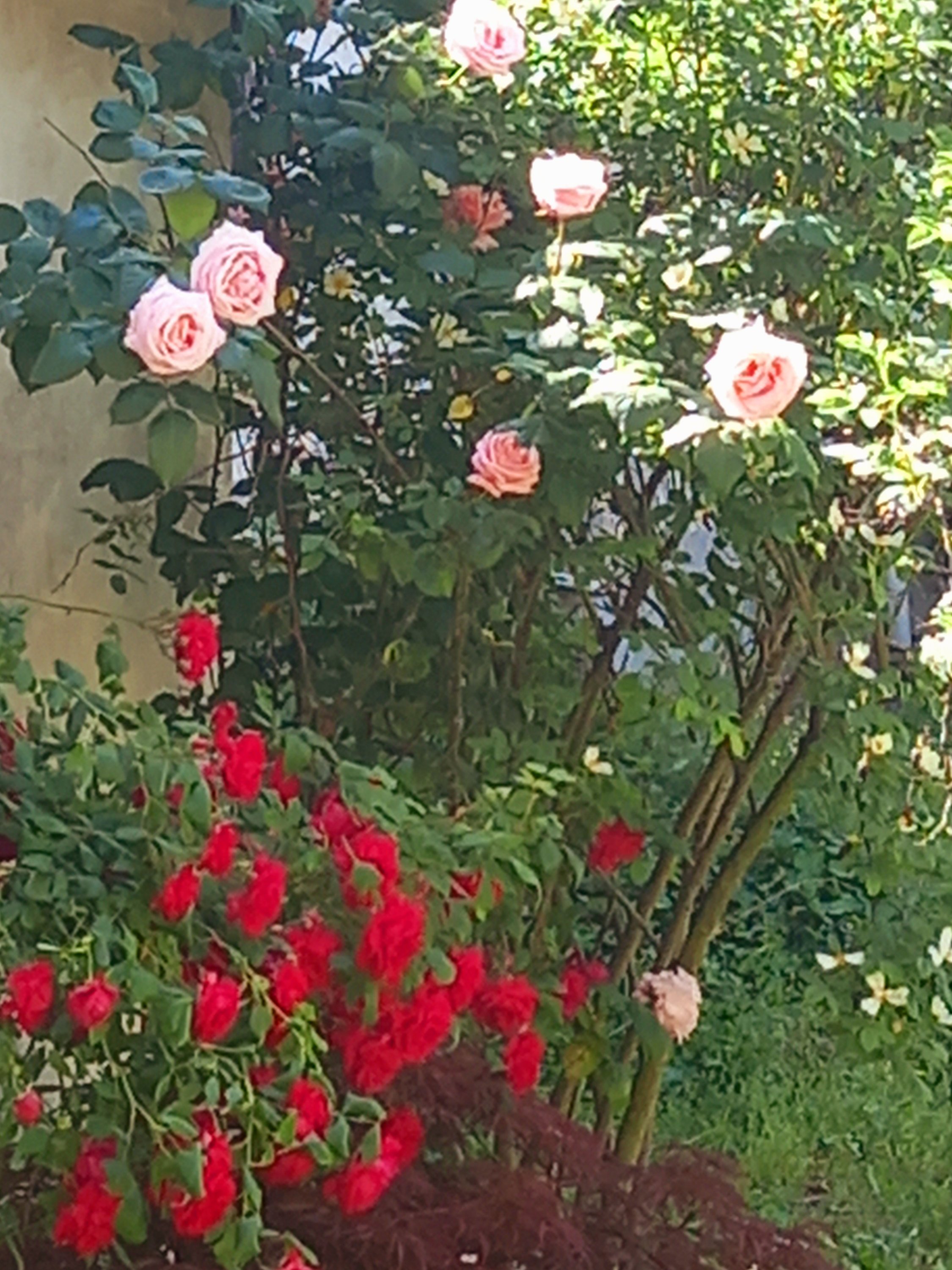 Le rose in fior di svariati colori mi parlano di una buona giornata,  mi scrutano, fisse alle loro radici, soltanto la brezza calda le fa danzare dolcemente.